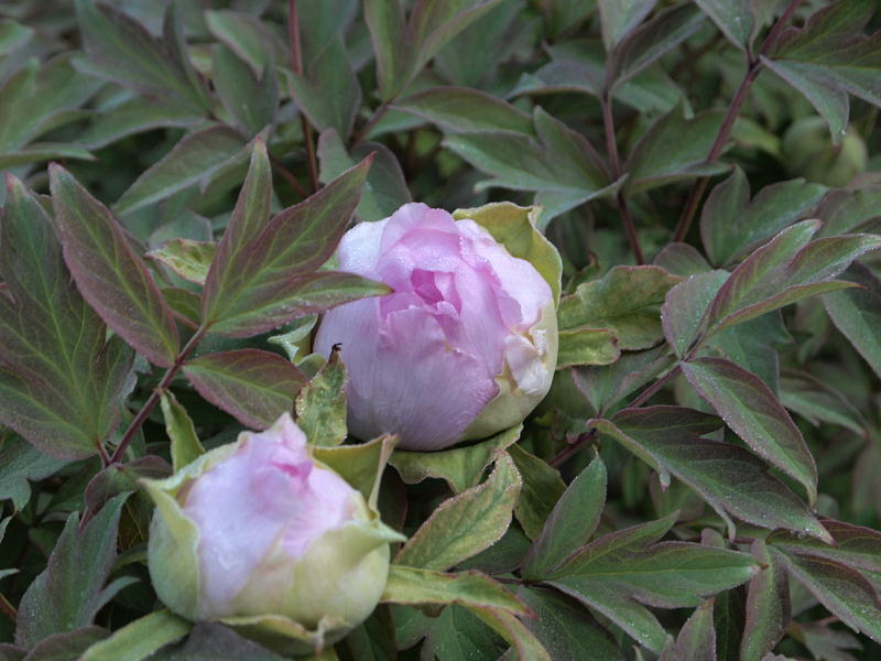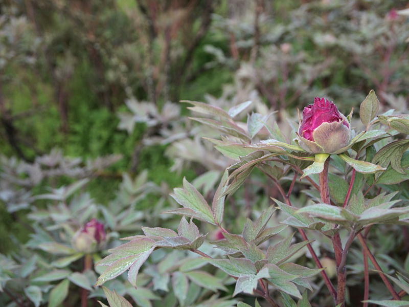 ボタンは幾株かで花びらが姿を見せるようになりました。フジも房がほぐれだしました。こんな調子で クラフトまつり2010 には間に合うのでしょうか。