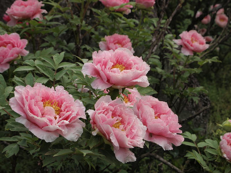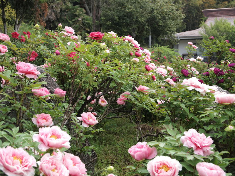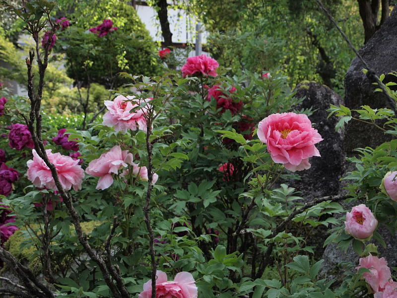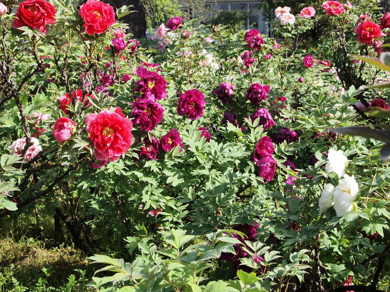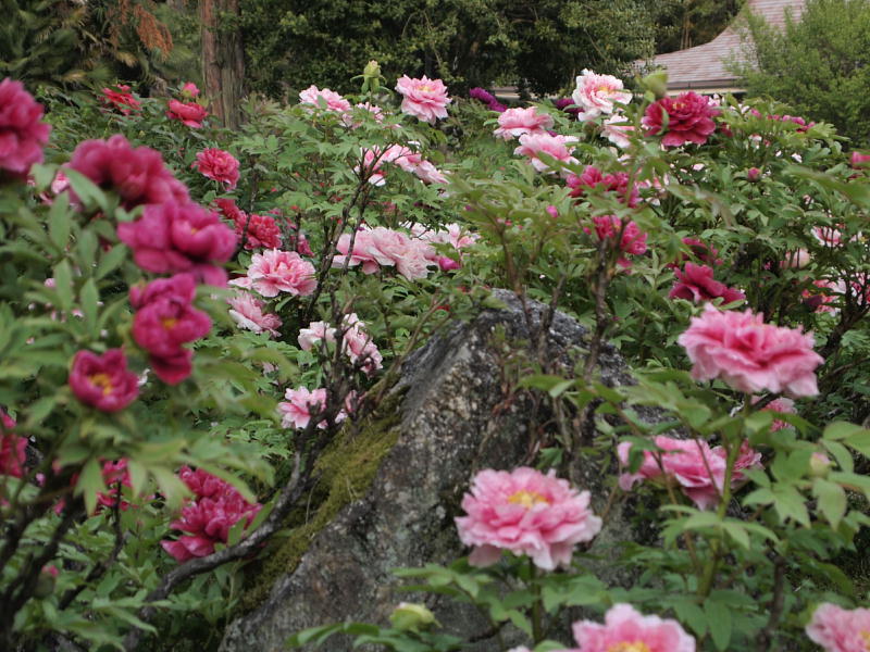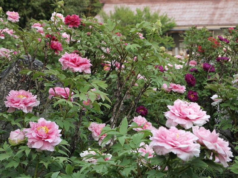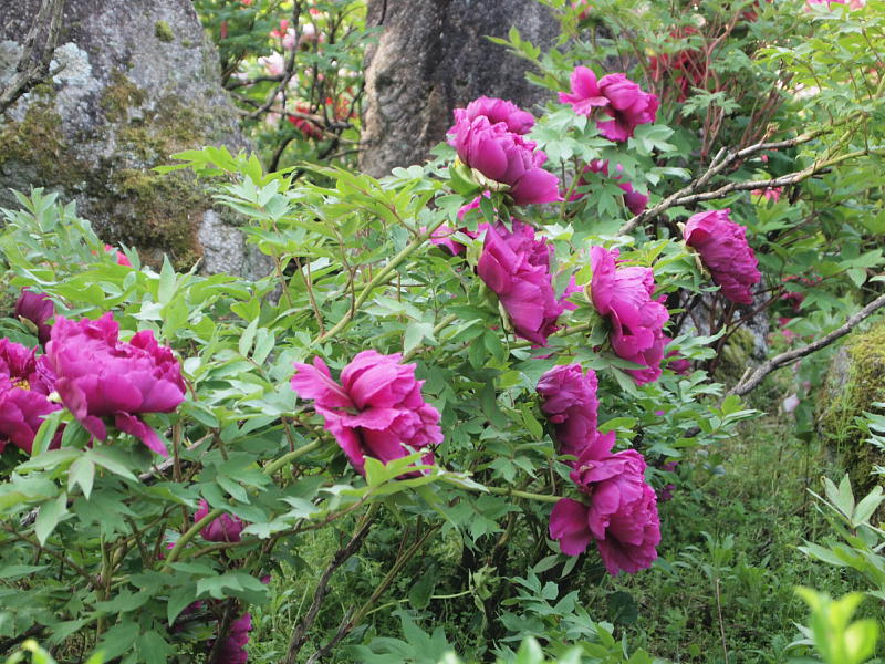 ボタンもフジも咲きそろい、おそらく今日がピークです。雨が降る予報が出ていますので、フジはまだしもボタンは雨で叩かれ傷んでしまうと思われます。。