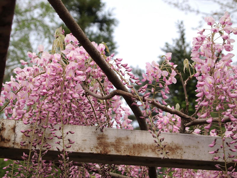 昨日は夜半まで結構強めの雨が降り、ボタンは花がだいぶ傷んでしまいました。フジはそれほど影響を受けたようには見えません。
