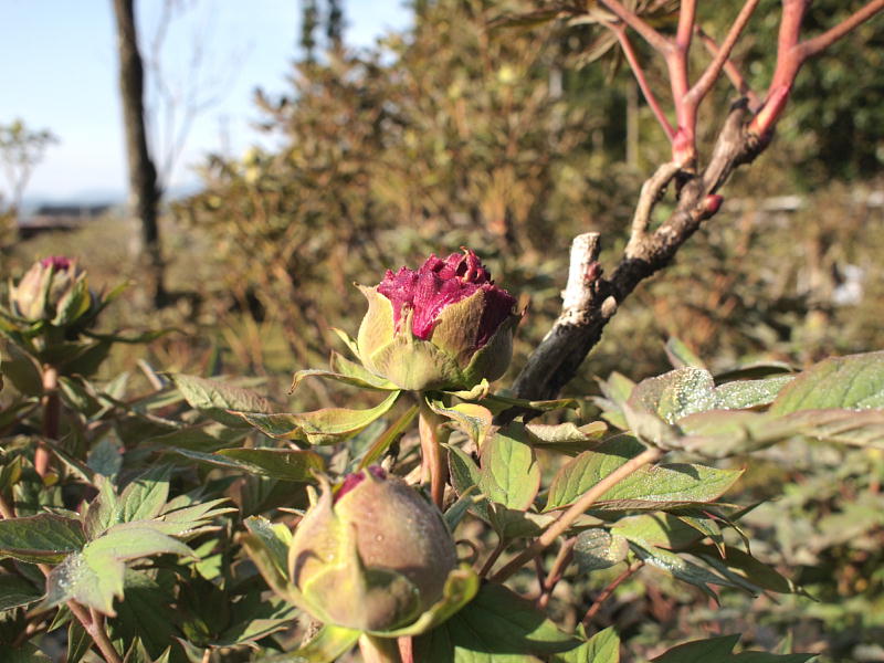咲いた株もあるのですが、全体の様子はまだまだつぼみは堅いのです。