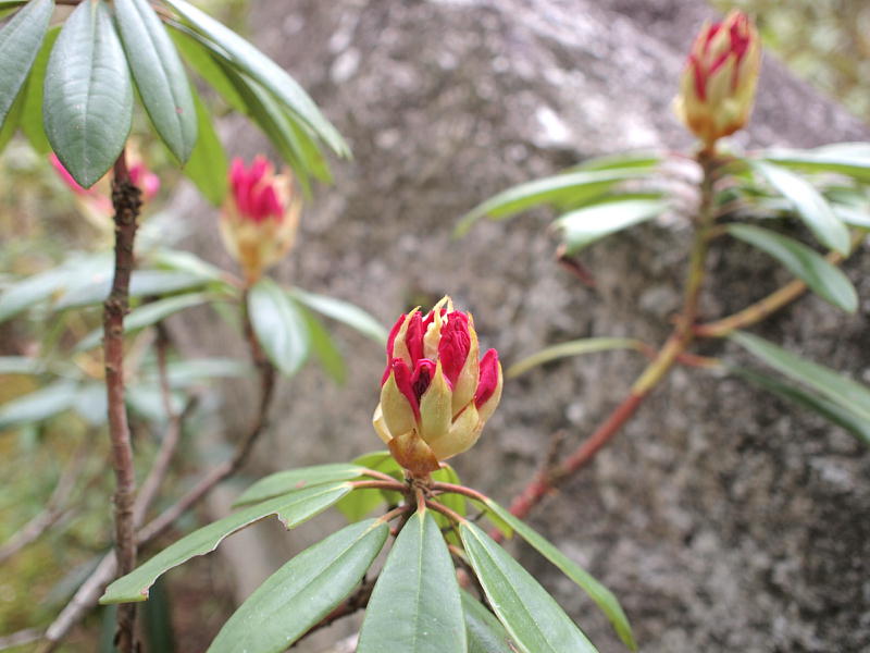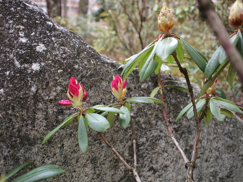 そんな天候の下、先日までは動きの見えなかったシャクナゲのつぼみがむくむくと大きくなってきました。ここ幾年かは四月の中旬には咲いていますので、今からでないと間に合わないのかも知れません。