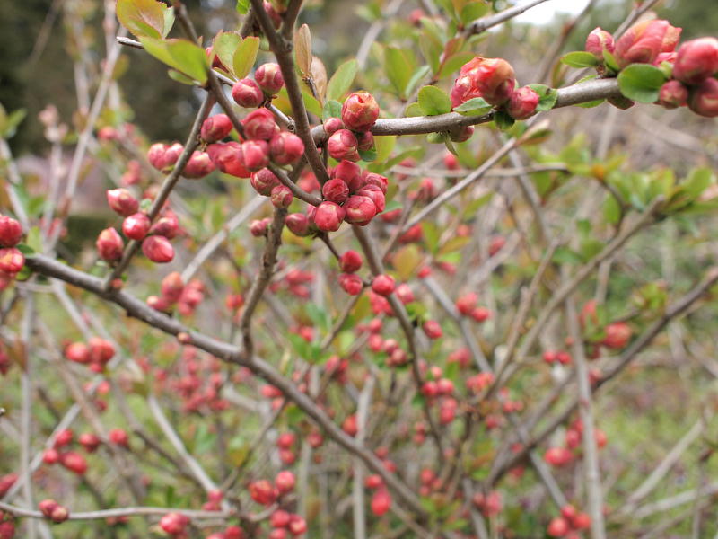 ボケの花はきれいなのですが株立ちになり、庭の中では納めるのに難しいような気がします。