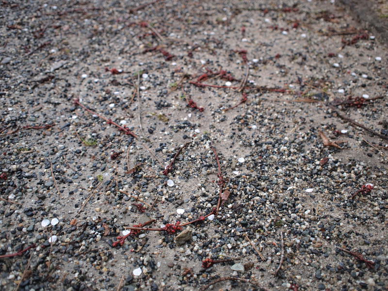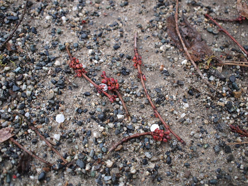 ところで、毎年そうなのですがこの時期にはたくさん花芽のついた小枝が落ちています。何らかの鳥が花芽を狙って来ているのではないかと思っていますが、はっきりしたことは判りません。えらい人に教えていただきたいです。