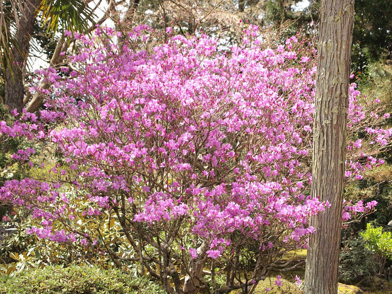先日のミツバツツジは何とか満開になりました。偶然なのでしょうが毎年お祭りに合わせて咲きます。