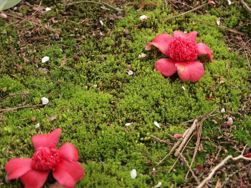 ツバキは「ハラハラ」ではなく「ボタボタ」と花を落とします。管理人が生まれたところでは、-庭に植えるな-と云っていましたが、実際は普通に植えられています。まあ「ハラハラ」と落ちるものより掃除はしやすいですが。