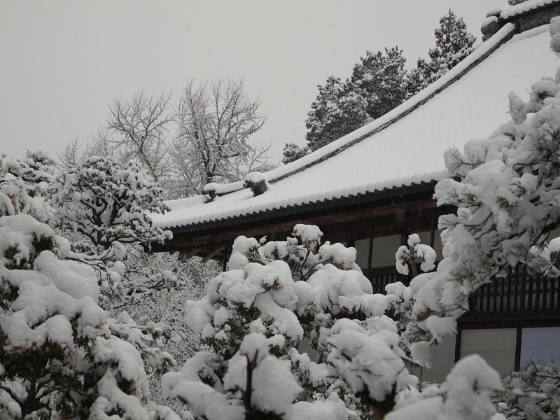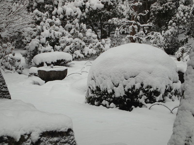 朝方から雪が舞いました。実質この冬初めての雪となりました。段々量が降りご法事に出かける頃は休日と言うこともあって道路にも残りだしました。出かけるときには「もんぺ」「長靴」持参です。祭壇前の法要の後、もんぺ・長靴を履いてのお墓参りとなりました。最近整備されたその墓地は通路に磨かれた石が使われているので非情に滑りやすく、施主の方は「あぶない、あぶない」で済みましたが、若いお婿さんは転んでしまいました。施主(私より若い)大爆笑。「笑っちゃいかんでしょ」は私。